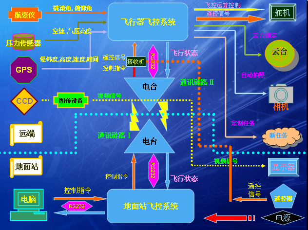 環(huán)保無(wú)人機(jī)機(jī)體集成自主駕駛系統(tǒng)、圖像采集系統(tǒng)、圖像傳輸系統(tǒng)、紅外熱像儀、有毒有害氣體監(jiān)測(cè)、地面控制基站等設(shè)備。利用固定翼無(wú)人機(jī)或旋翼無(wú)人機(jī)搭載攝像機(jī)、視頻監(jiān)控及有毒有害氣體監(jiān)測(cè)設(shè)備對(duì)城市及周邊各種環(huán)境進(jìn)行大范圍的連續(xù)巡航偵測(cè),將獲取的航拍圖像、視頻及氣體檢測(cè)信息傳送回后臺(tái)服務(wù)器,經(jīng)過(guò)處理后推送到環(huán)境監(jiān)察執(zhí)法及環(huán)境應(yīng)急管理系統(tǒng),為環(huán)境監(jiān)察執(zhí)法提供執(zhí)法依據(jù),為突發(fā)環(huán)境應(yīng)急事件處理處置提供決策支持。