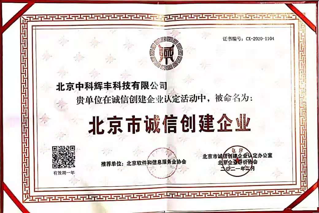 祝賀我司榮獲北京市誠信創建企業榮譽證書