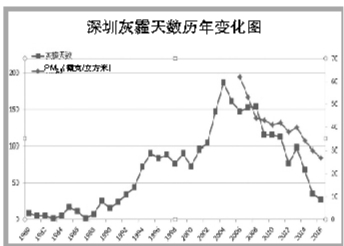 資料顯示,2014~2016年深圳市空氣質量連續3年實現全面達標。2016年,深圳在國內生產總值(GDP)較1998年增長12倍以上,機動車數量增長5倍以上(機動車保有量全國第三、密度第一),人口數量增加一倍以上的情況下,PM2.5濃度降到27微克/立方米,霧霾日從歷史最高值187天減少至27天。