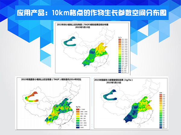 經(jīng)過3年多的努力,國家氣象中心實現(xiàn)了作物模型的全面業(yè)務(wù)化應(yīng)用,其中包括冬小麥干熱風(fēng)災(zāi)害影響定量評估、華北夏玉米干旱解除預(yù)評估、作物產(chǎn)量動態(tài)和定量氣象預(yù)報等;同時,玉米、水稻、小麥葉面積指數(shù)、生物量和穗重的逐周模擬產(chǎn)品也在國家氣象中心業(yè)務(wù)網(wǎng)站上定期發(fā)布。