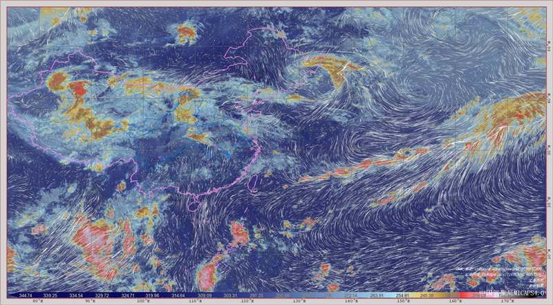 MICAPS4.0中的衛星紅外云圖與細網格風場疊加圖。高嵩供圖