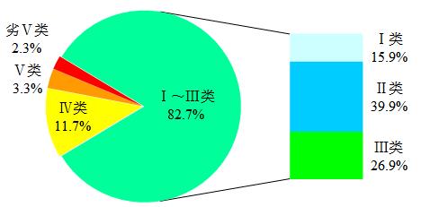 圖2  2021年1月七大流域和西南、西北諸河及浙閩片河流水質類別比例