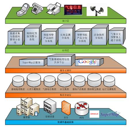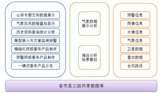 建立統一的數據采集、傳輸、存儲和分發平臺,集成多種來源的山洪地質災害業務數據,包括基礎地理數據、氣象觀測數據、預警預報數據、水文數據、社會經濟數據、服務產品等,形成一個標準化的山洪地質災害氣象服務綜合數據庫,實現省、市、縣三級山洪地質災害數據、產品的同步和共享。